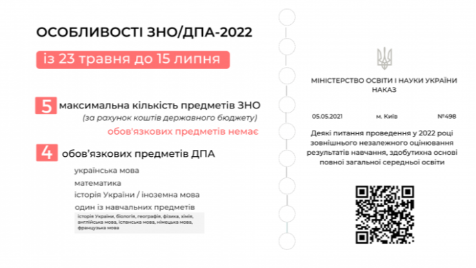 Перелік предметів ДПА у формі ЗНО. 11 клас (2021/22 навчальний рік)
